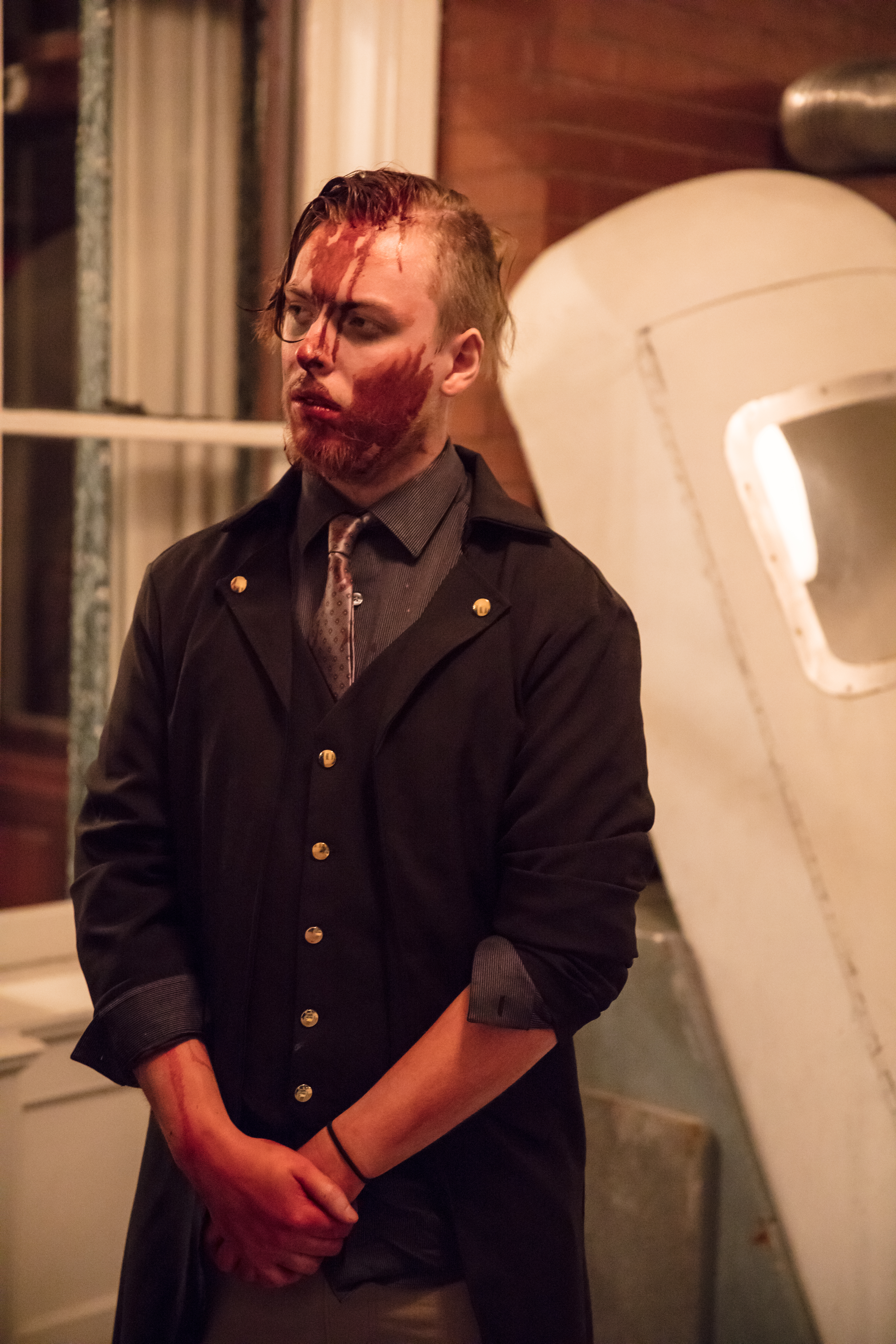 Setting, Props and Costumes: I am in awe of everything visual about this game. The site that Reverie found was utterly perfect for a game about dark New England horror. To this moment I can remember the feel of cold concrete beneath my bare feet on the towering island where so many rituals were held. But it wasn’t just the venue, their ability to set dress and create costumes is up there with a movie house. The ProGenus’ corner medical room (pictured below) had the perfect mix of clinically sterile, mad science, and clear plastic medical sheeting tarped enough across the floor we could lay in pools of our own fake blood without worrying about damaging the venue. Tyler Brown had made over a dozen disturbingly gorgeous ritual cult masks the player base had full access to use all game. The costumes for all the NPCs completely transformed them to the point I did not realize who was playing what character. I’d play another Reverie game just to see their set and costume values alone.