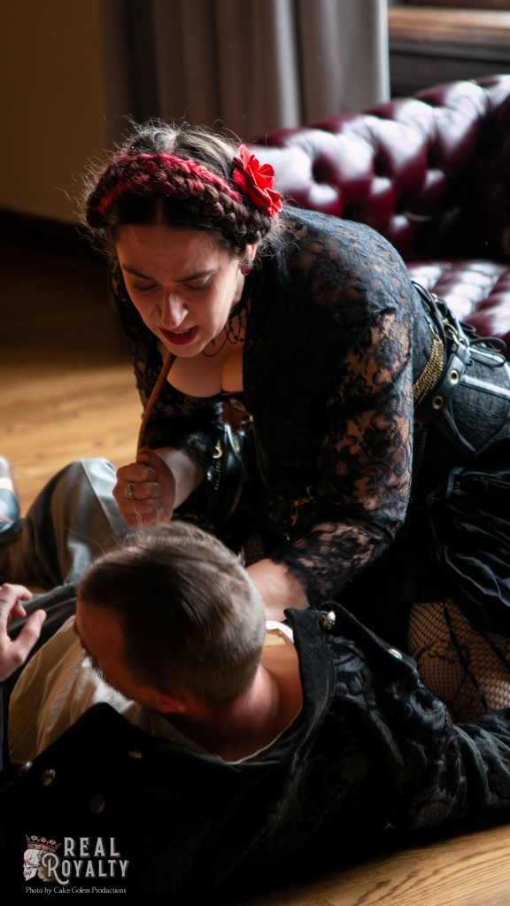 (Photos by Kristin Story and Cake Golem Productions.) In early April 2019, I had the pleasure of being invited to cover Hanging Lantern’s event “Real Royalty” written and designed by Natasha Borders, Jeffrey Steele, and Benji Michalek. The game was a dark fairytale incorporating stories and inspiration from the world’s most famous, classic stories. From a designer’s standpoint, Real Royalty was an amazing and fascinating game. While not everything worked and the experimental mechanics certainly could have used more playtesting before going live, the fact that the Hanging Lantern team was willing to try so many experimental things meant that Real Royalty helped push freeform mechanical design forward dramatically faster than any game I’ve played in the last two years. I learned so much and I am so thankful for the chance to participate in this innovative game. Therefore, let’s get into the deep critique of what happened during my two days living in a dark fairytale. As usual, I’ll start with what didn’t work and move up from there.